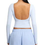 Fierce Luxe Long Sleeve Yoga Crop Top - Urban Elegance Collection - Blue / S